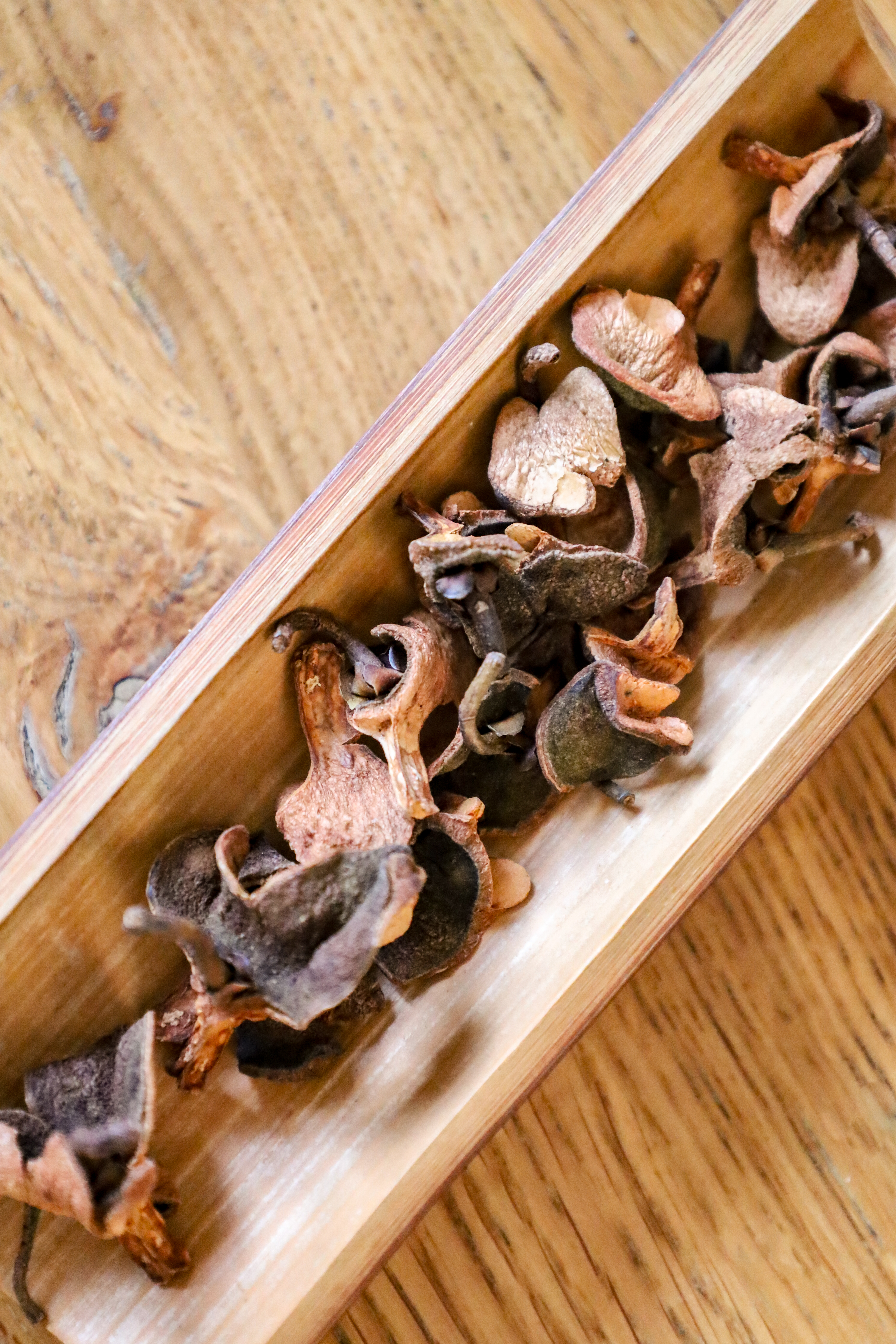 Ce lot, composé de cosses (l’enveloppe des graines de théier), a été récolté le 17 octobre 2025, en automne, lorsque les graines de théier étaient prêtes à être cueillies. Elles présentent une palette de couleurs allant du brun clair au brun foncé, avec de subtiles nuances rosées.
